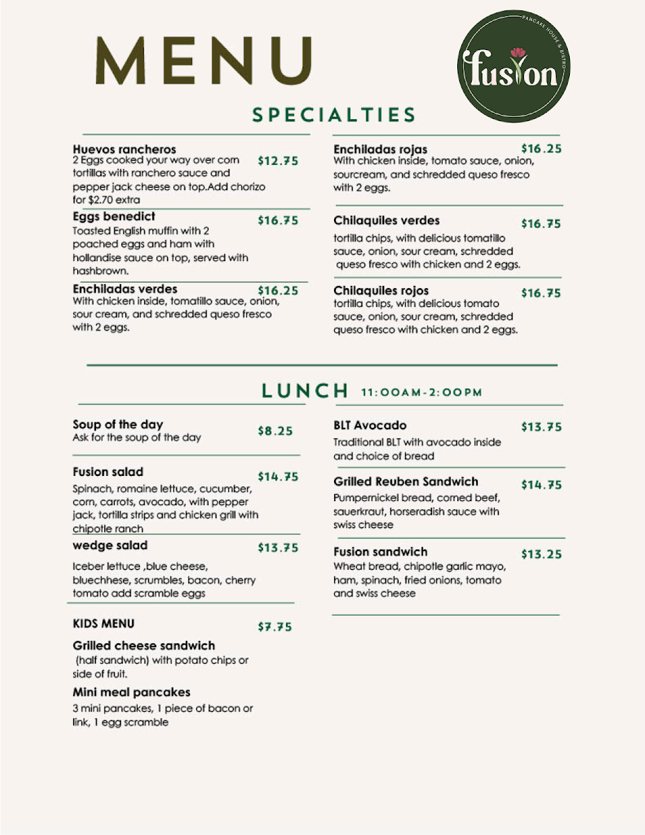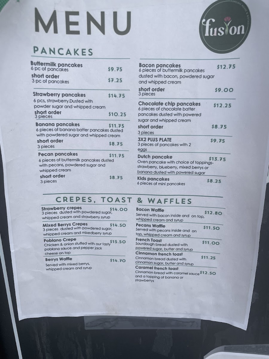 In conclusion, should you find yourself in the area, Fusion Pancake House & Bistro is not to be missed. With a harmonious blend of breakfast favorites, tantalizing tacos, and accommodating service, this bistro beautifully caters to both locals and visitors. You might just find your new favorite dish here, as many have before you. Don’t forget to explore their inviting dinner menu on your next visit!